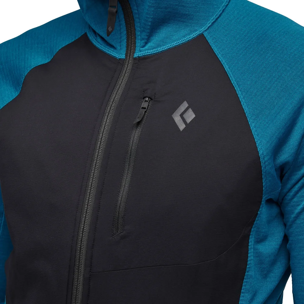 La capa perfecta para actividades de alto rendimiento, desde enfoques andinos, recorridos por el campo o carreras de montaña que requieren protección adicional, la sudadera con capucha Hybrida Coficient LT es una versión más elástica y liviana de nuestro popular forro polar Coefficient con aislamiento adicional. El panel frontal tejido, transpirable y con aislamiento de Primaloft brinda calidez contra los elementos, mientras que el forro polar Polartec® Power Grid® con un interior cuadriculado aumenta el rendimiento de absorción y agrega transpirabilidad. Un bolsillo en el pecho con cremallera guarda tu teléfono u otros elementos esenciales, mientras mantiene un perfil mínimo.