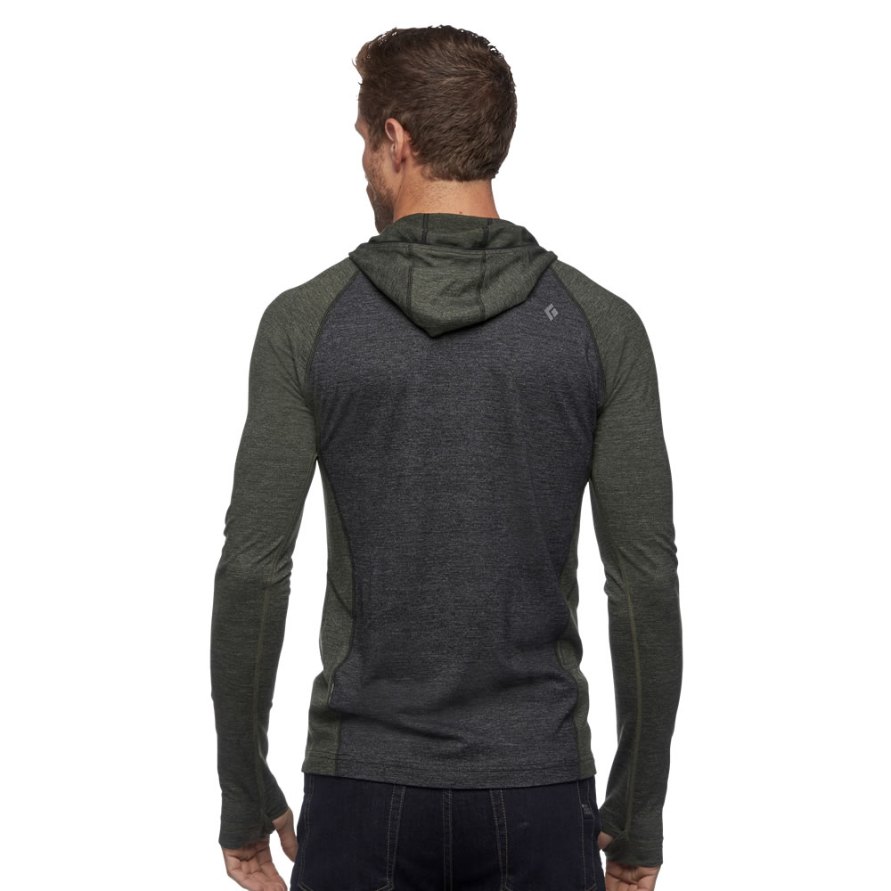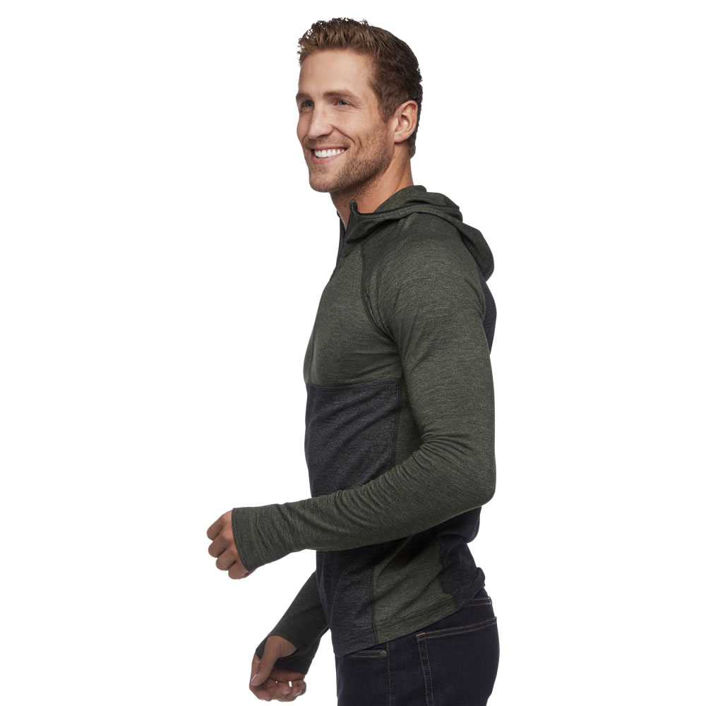 Ésta sudadera con capucha ofrece una termo-regulación superior y control de humedad eficiente, es naturalmente resistente a bacterias y malos olores. El panel del hombro y la capucha están diseñados para eliminar puntos de presión mientras carga su mochila. El tejido merino elástico NuYarn patentado es una tela más fuerte, más cálida y seca más rápido que otras telas de lana merino utilizando la tecnología de envolver un núcleo de nylon con fibra de lana merino extra-fina.