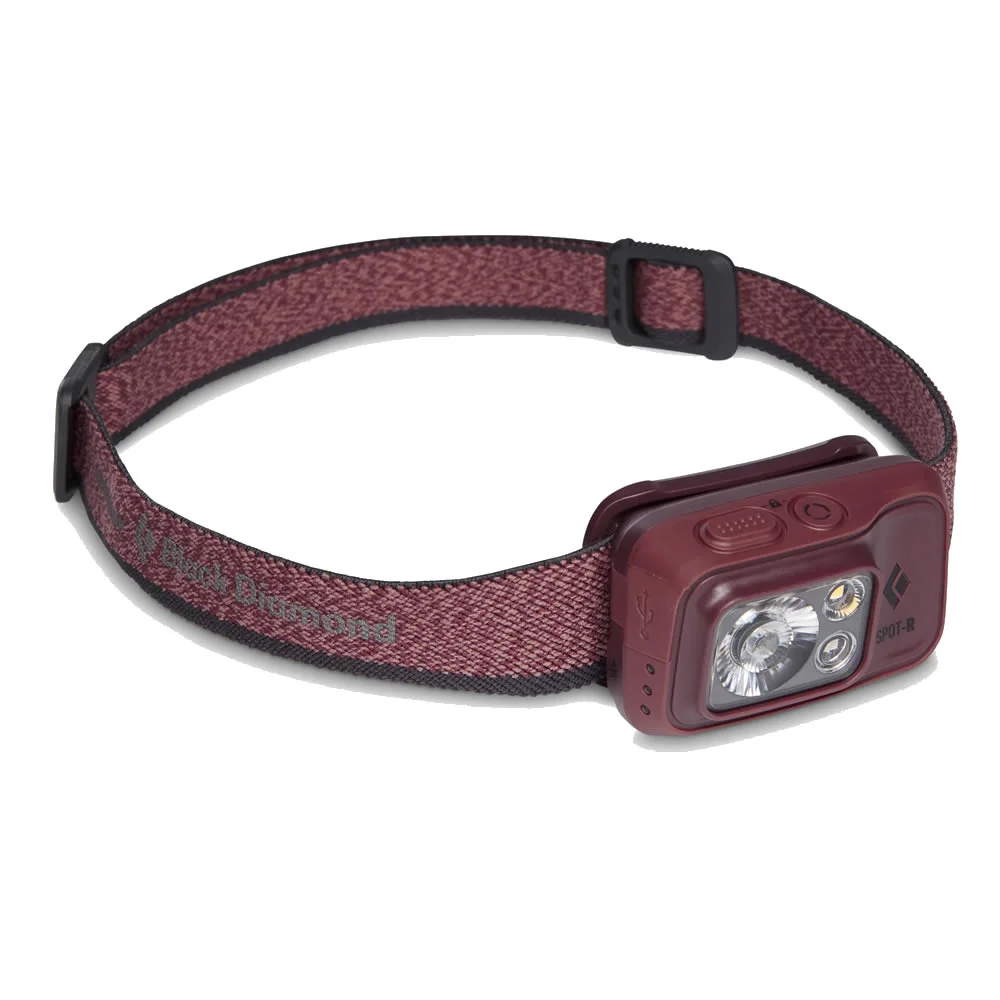 La linterna SPOT 400-R de la marca Black Diamond es recargable, tiene una batería no intercambiable, integrada, de iones de litio de 1500 mAh con puerto de carga micro-USB. En la parte lateral consta de unos leds que muestran el estado de batería. La cinta de sujeción es elástica reciclada con construcción de fibra Repreve cómoda al contacto con la piel. Se desarma fácilmente (se puede lavar) y hace que llevar la linterna sea muy cómodo.
